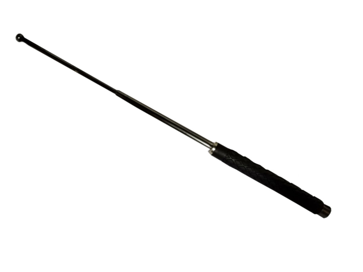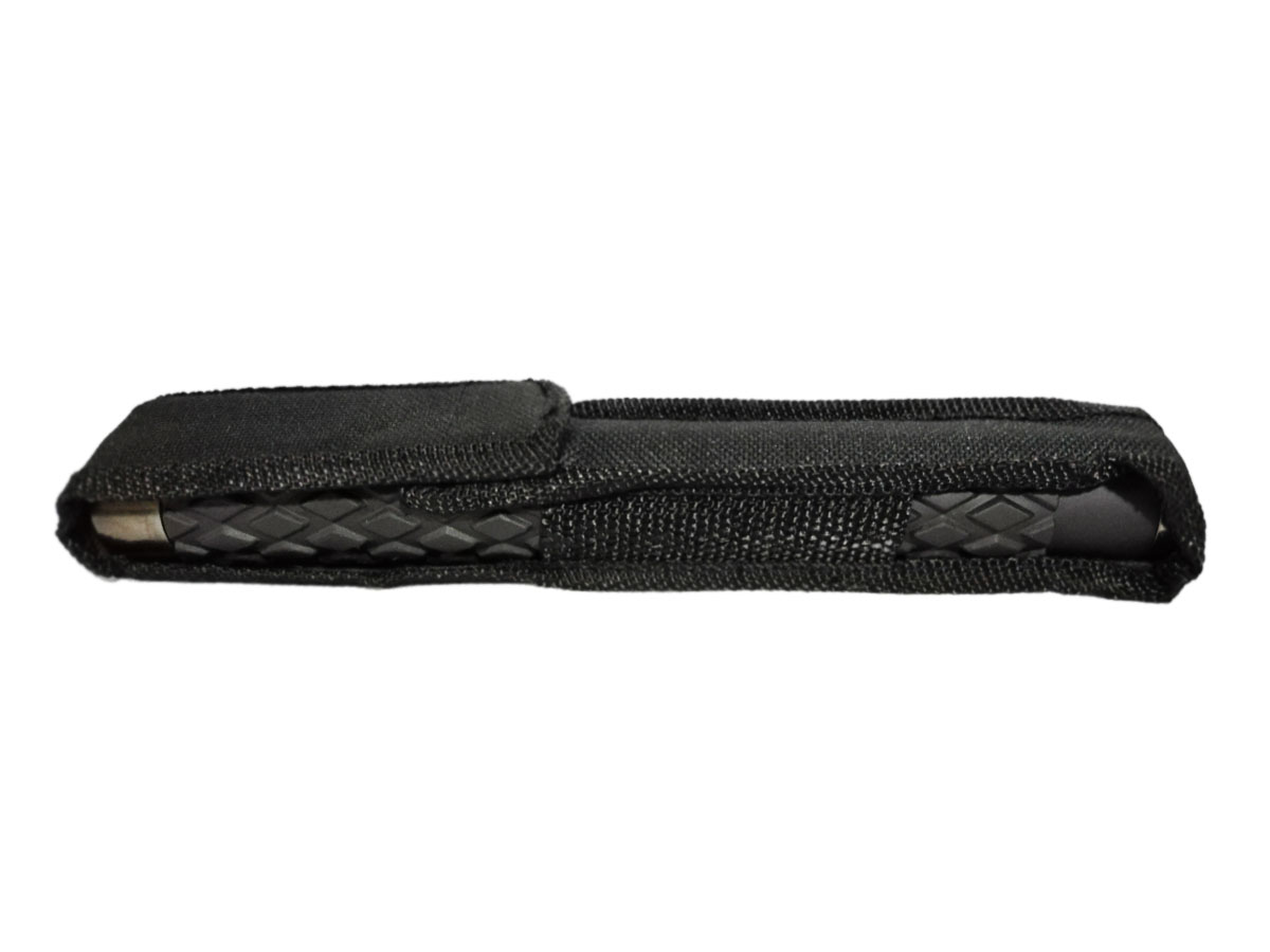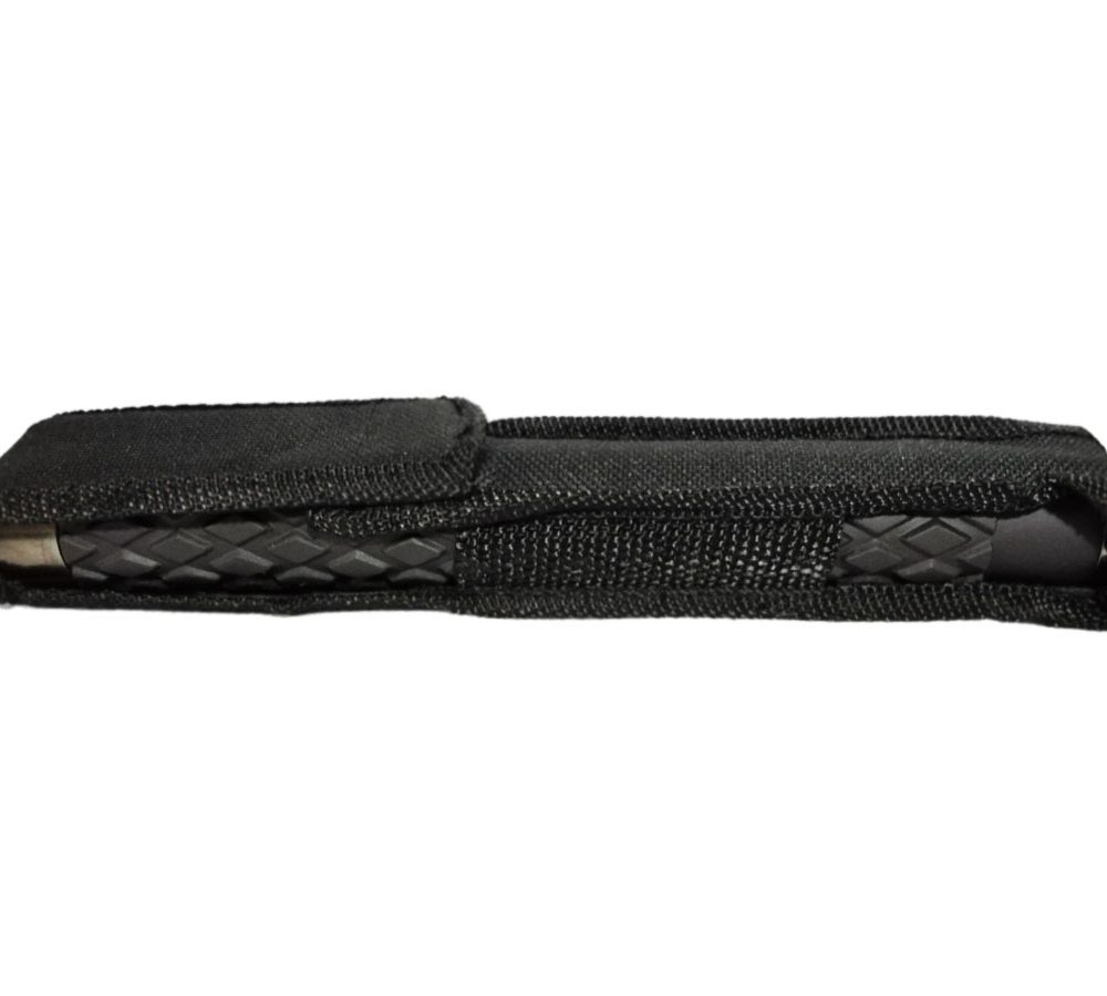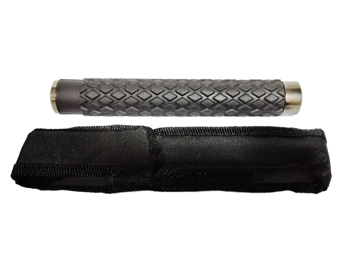 Tambo para defensa personal en acero niquelado, plegable (retractiles) para mayor comodidad al cargarlo, incluyen estuche para llevarlo cómodamente y cuenta con mango en caucho antideslizante.