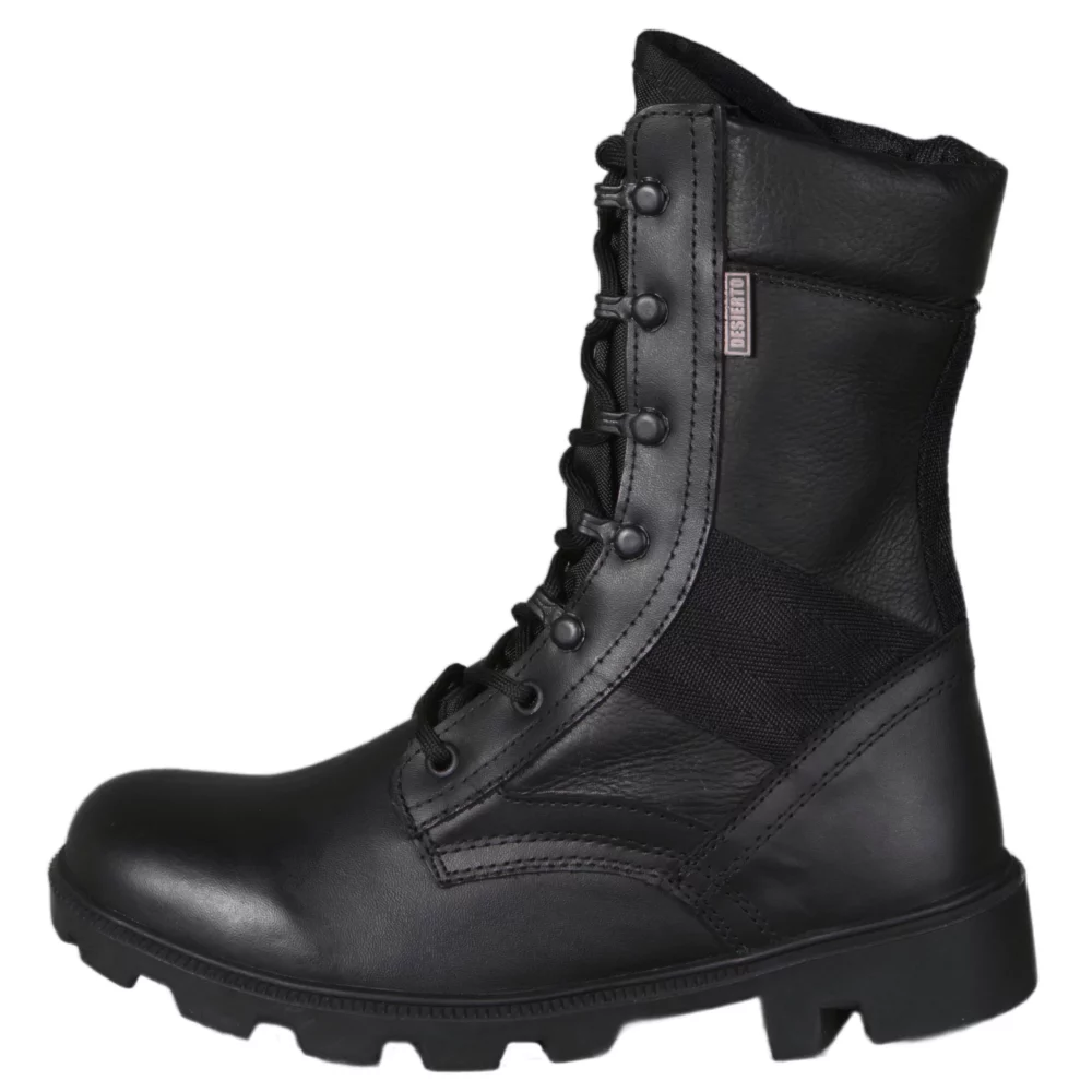 Bota Chihuahua Negra, elaborada en su totalidad en cuero genuino, suela en caucho resistente y antideslizante, cosidas y vulcanizadas, caña de 22 cm, acolchado interno térmico suave y plantilla cómoda y resistente.