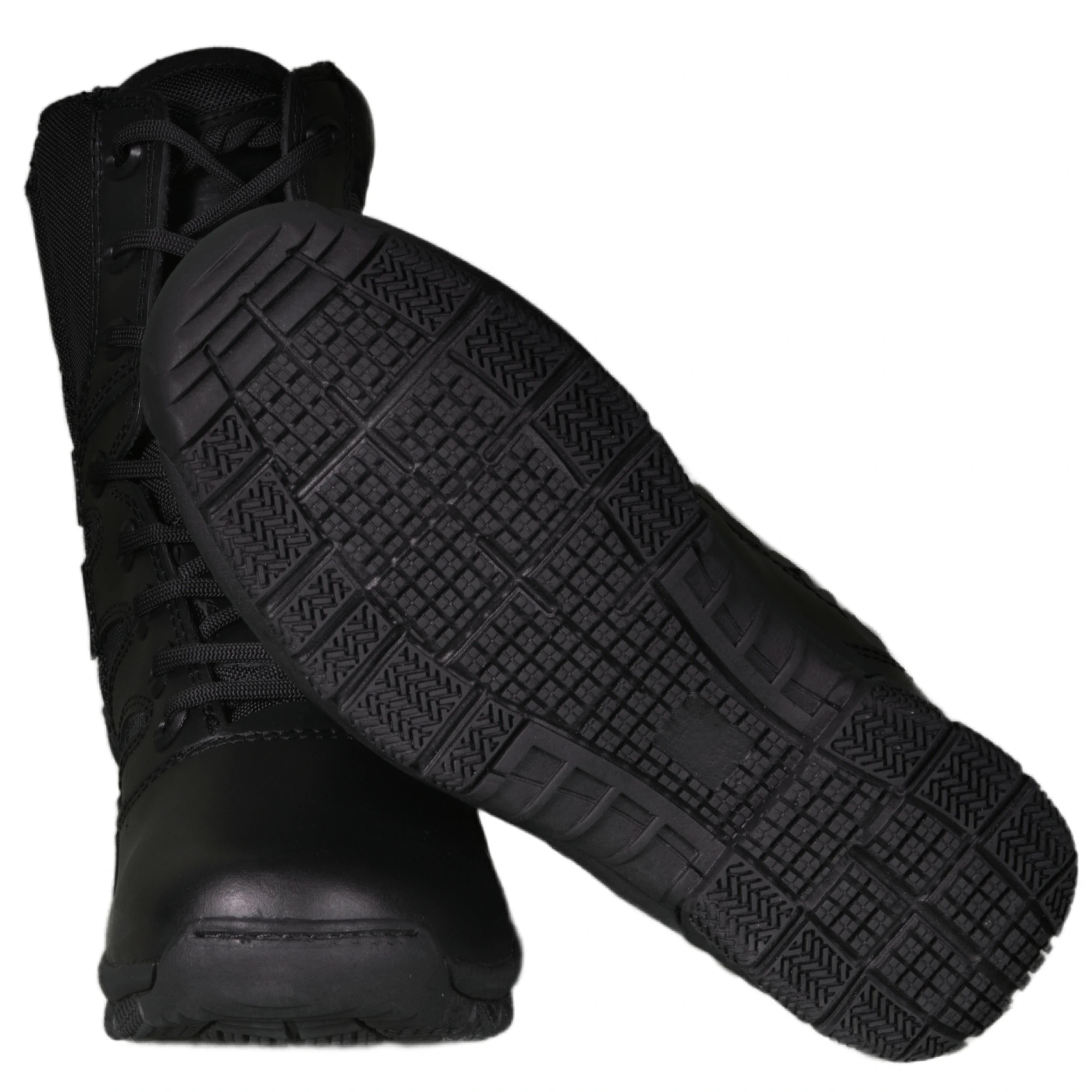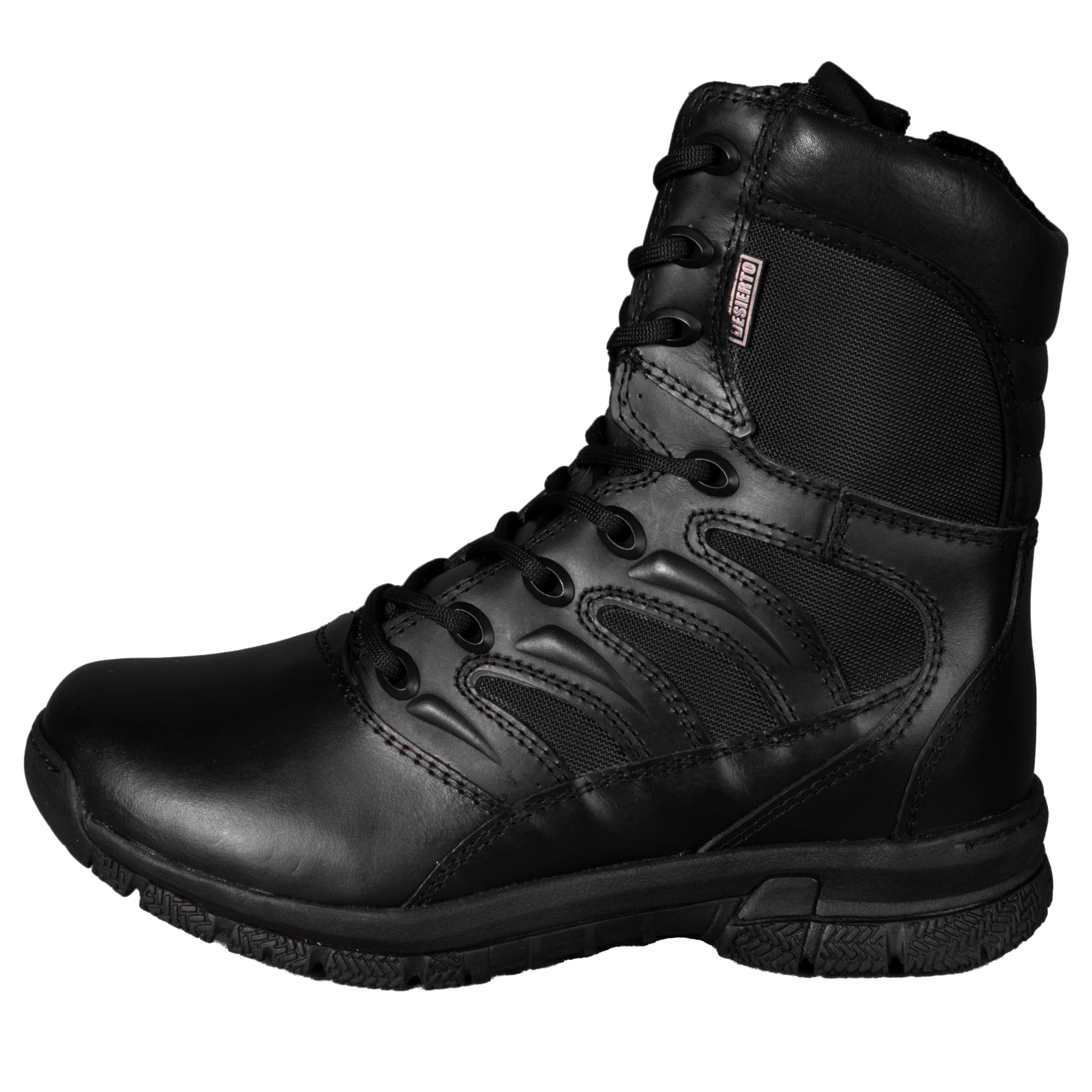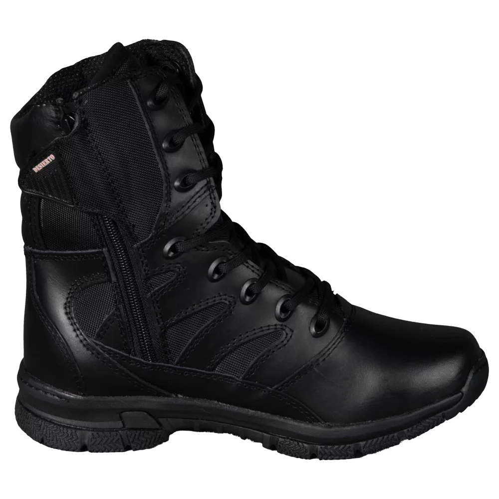 Bota Patagonia Negra, elaborada en cuero liso, lona impermeable de alta durabilidad, suela liviana en poliuretano resistente y antideslizante, vulcanizada, medidas caña de 20 cm, acolchado interno térmico suave en poliéster, cremallera lateral y plantilla resistente y suave.