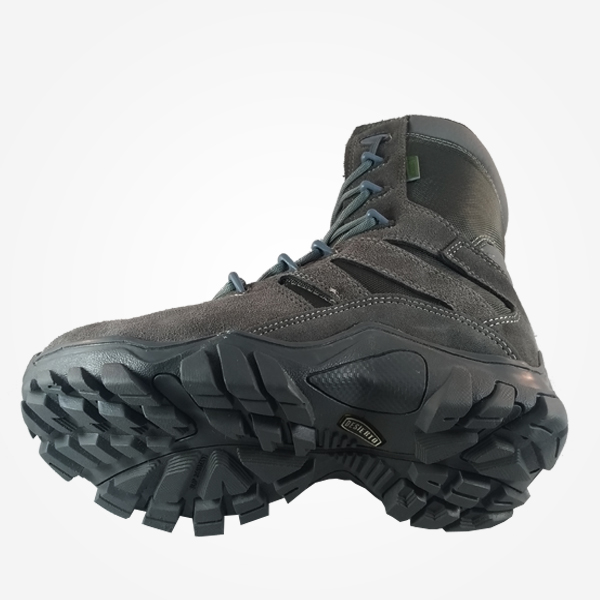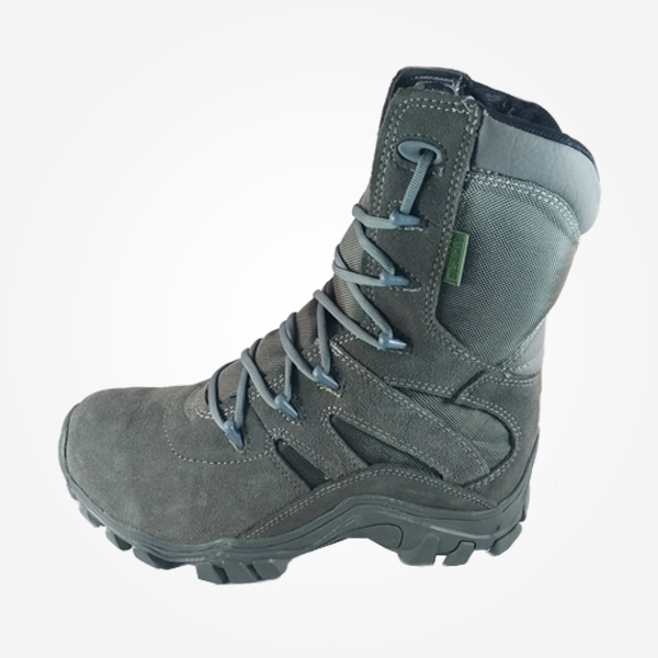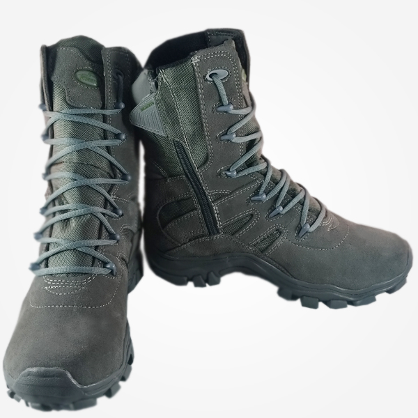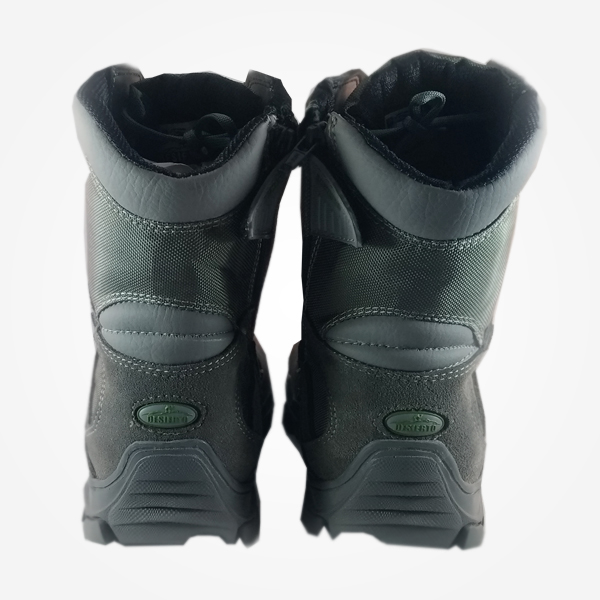 Bota Táctica Desierto Sahara Media Caña Color Gris, todo terreno, elaborada en gamuza 1A, lona impermeable de alta durabilidad, suela liviana en caucho resistente y antideslizante, vulcanizadas, caña de 20 cm, acolchado interno térmico suave, cremallera lateral y plantilla semi ortopédica.