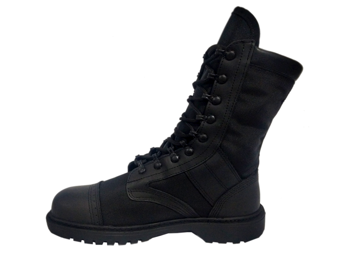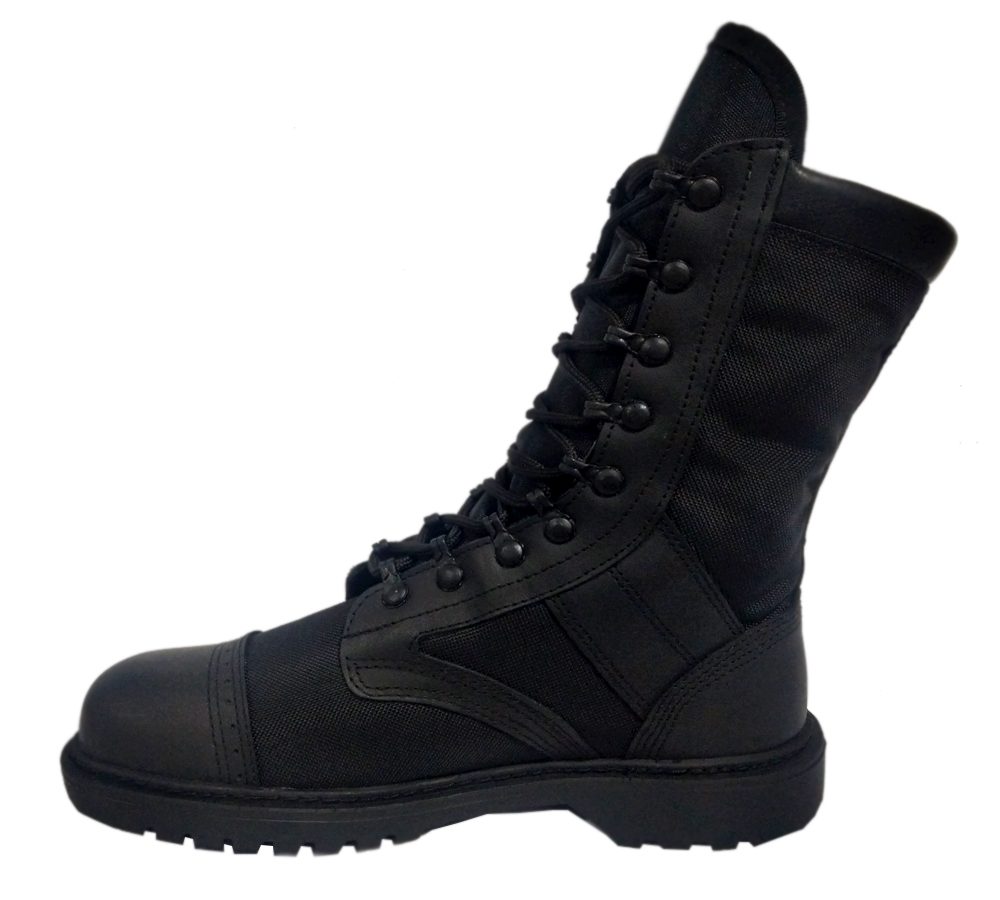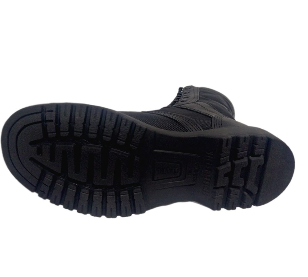 Bota Tatacoa Negra, elaborada en cuero liso, lona impermeable, suela liviana en caucho antideslizante, vulcanizada, caña de 23 cm, acolchado interno térmico suave y plantilla resistente y cómoda