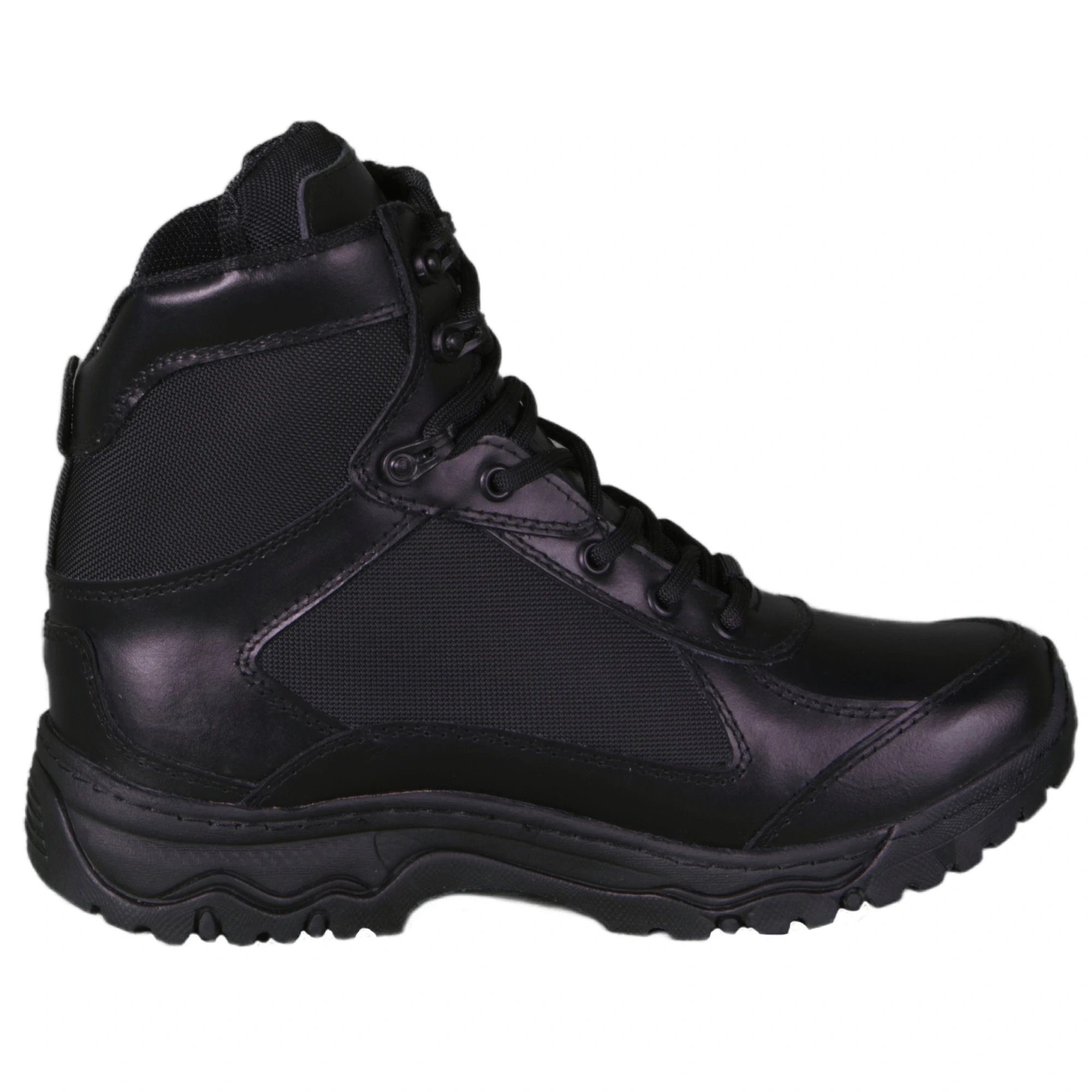 Botín Candelaria Negro, elaborado en cuero liso, lona impermeable de alta durabilidad, suela liviana en caucho resistente y antideslizante, cocidas y vulcanizadas, caña de 18 cm, acolchado interno térmico suave y plantilla suave y cómoda.