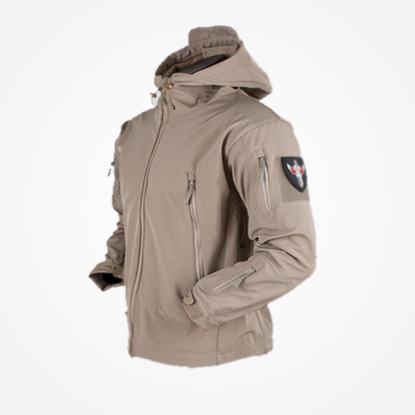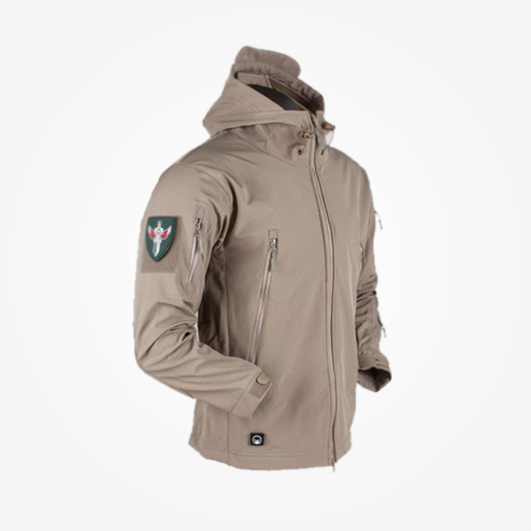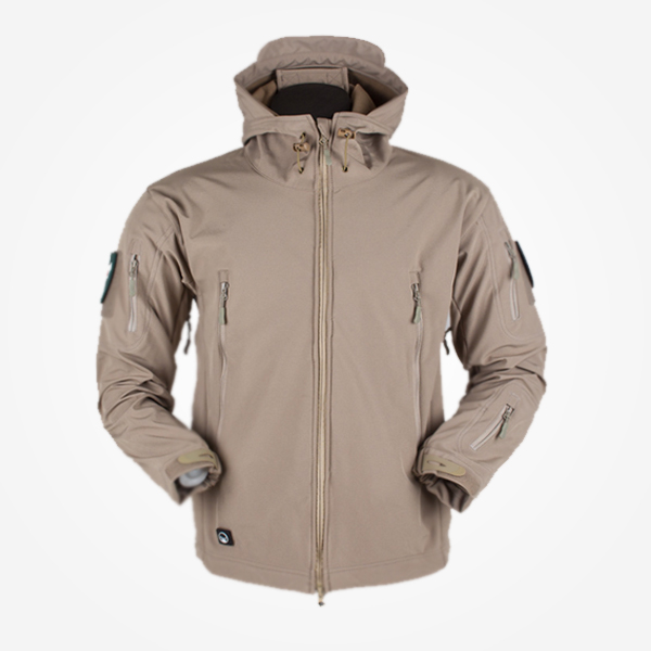 Chaqueta táctica térmica para hombre, impermeable a prueba de viento, elaborada en nylon, drytec y cotton con capucha e impermeable, consta de dos bolsillos frontales y uno posterior y tres en los brazos, ideal para camping, senderismo o paseo de calle. No incluye parches