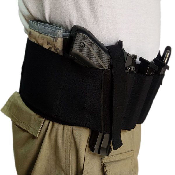 Faja porta armas cortas universal, táctica elástica, cuenta con compartimento para arma, billetera, dos portaproveedores y celular. Ideal para servicios discretos de uniformidad o para resguardar sus elementos de posibles robos.