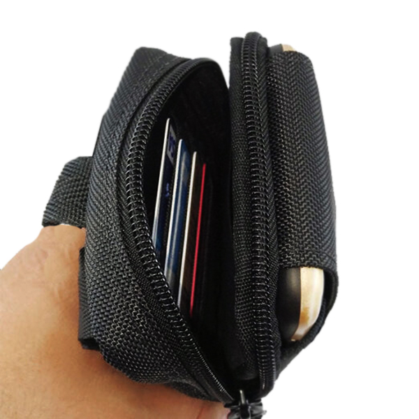 Organizador táctico pequeño color negro, bolsa para celular vertical , elaborado en lona impermeable, medidas 17 CM alto /11 CM de ancho /4 CM de fondo.