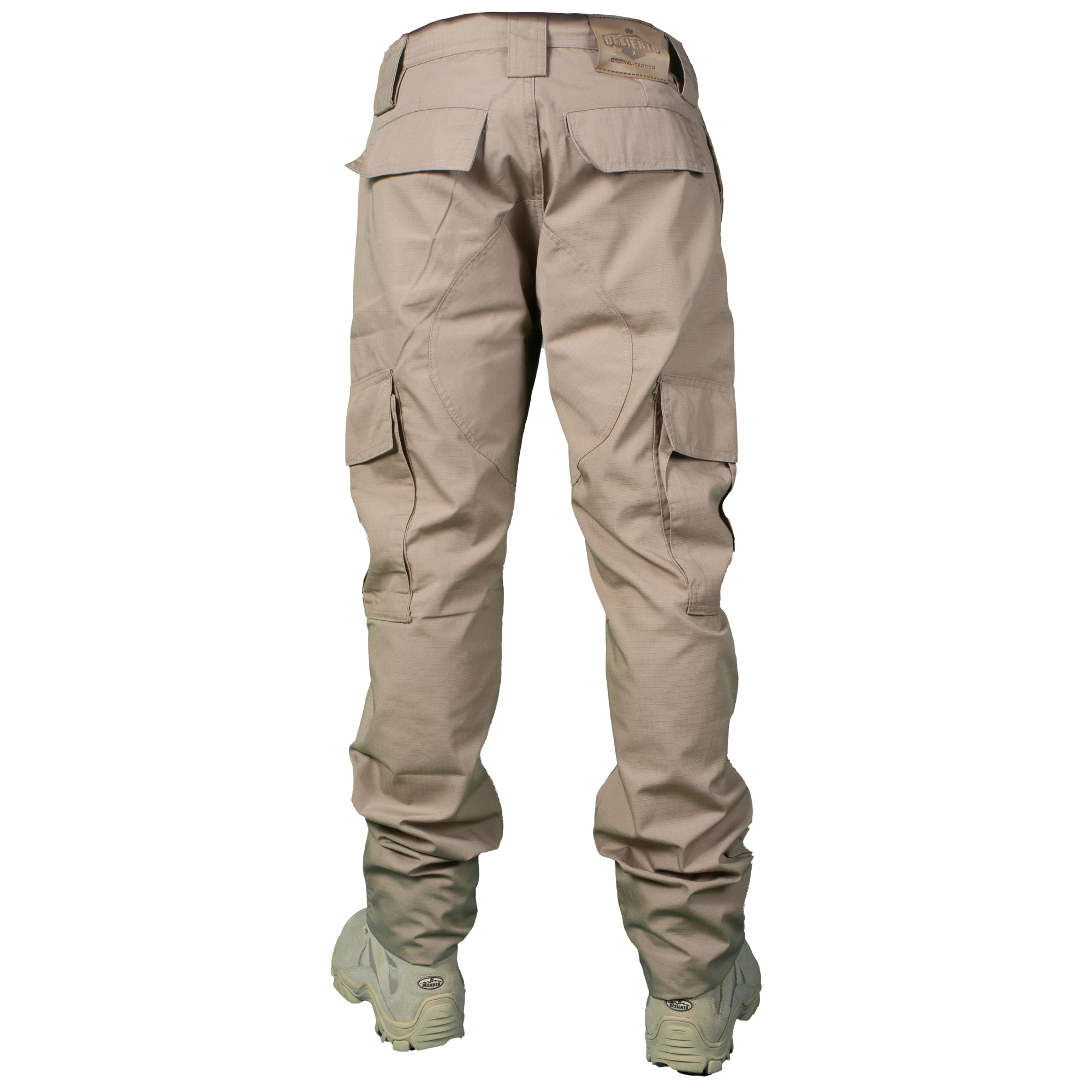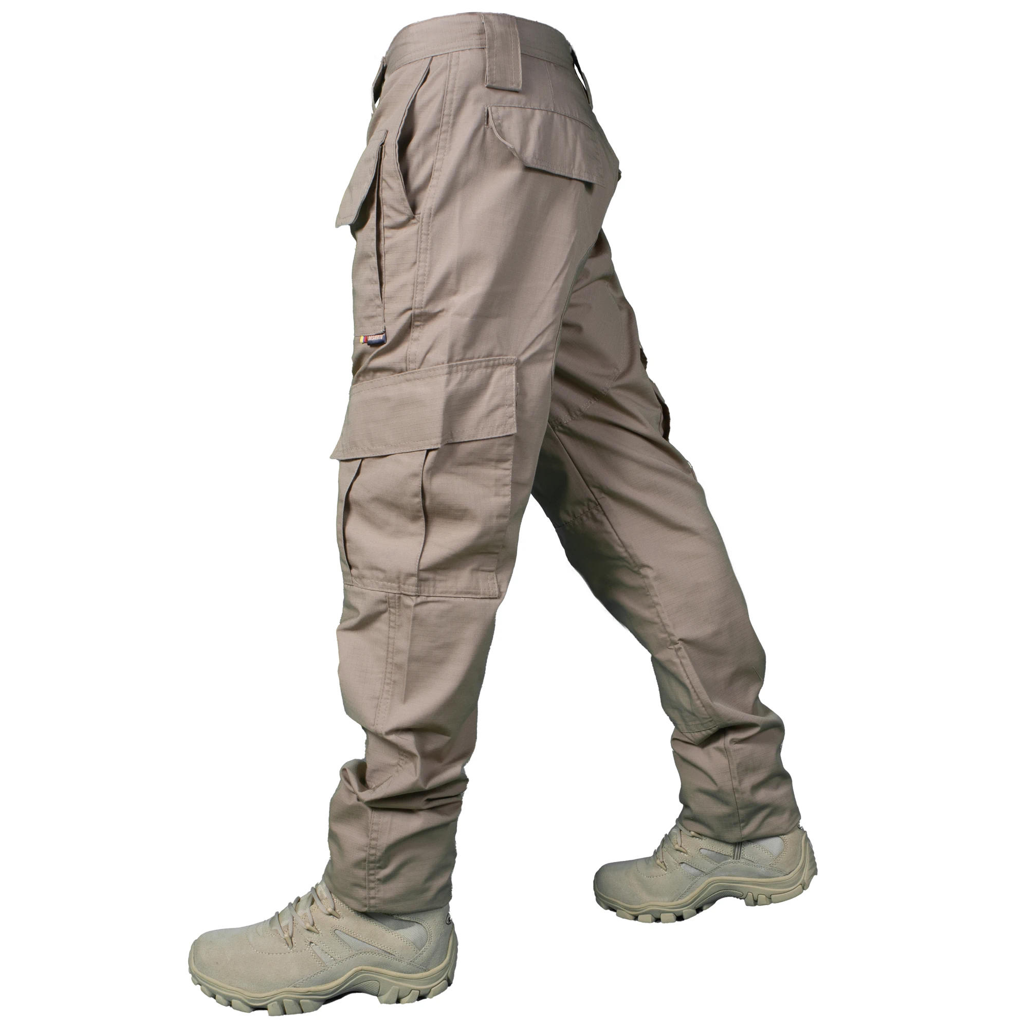 Pantalones tácticos Desierto, elaborados en dril ripstop, equipado con cuatro bolsillos laterales, dos bolsillos posteriores y un bolsillo delantero, cremallera resistente.