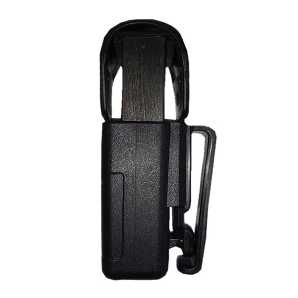 Porta proveedor individual, fabricado en polímero de alta resistencia al impacto y la fricción, con muy bajo peso, con gancho simple de sujeción para cinturón. Este accesorio es ideal para portar cargadores de pistolas 9MM de 15 proyectiles.