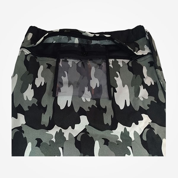 Tula o bolso manos libres, elaborado en lona impermeable con medidas de 38 centímetros de ancho por 48 centímetros de alto. Cuenta con compartimento grande ajustable, un compartimento horizontal de 30 centímetros con cremallera y un compartimento pequeño interno impermeable, ideal para salvaguardar el celular de la lluvia. Este bolso es ideal para llevar elementos ligeros como libros, elementos deportivos o el casco.